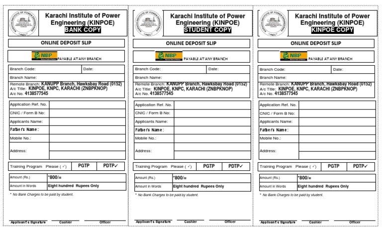 Bank Deposite Slip Of Nbp / How To Fill Fpsc Challan Form Download Fpsc Challan Form : On the backs of most deposite slips, there is space for more checks to be added.